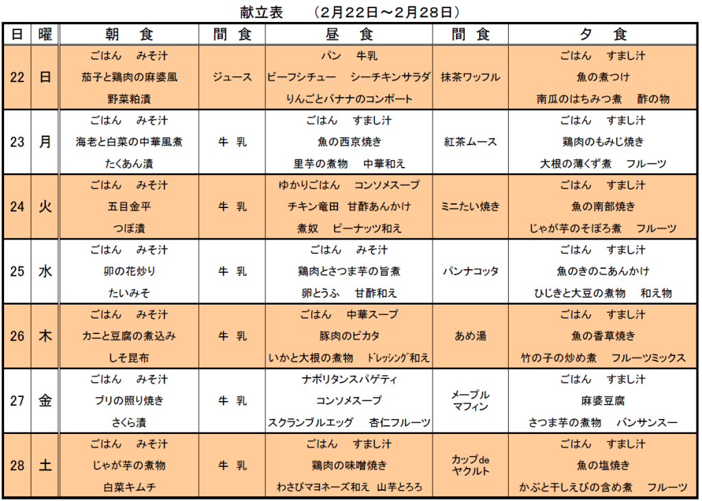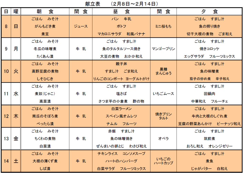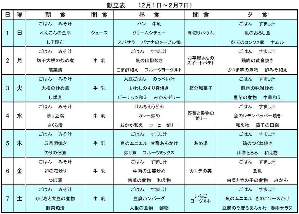 2月のメニュー表