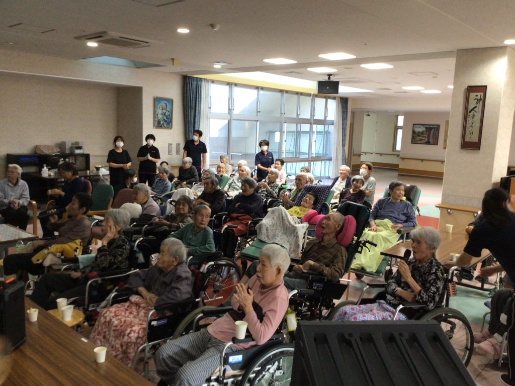 クラブ活動:カラオケ(ホーム) 2025年10月13日2025年10月13日 令和7年10月13日(月)特別養護老人ホームではクラブ活動「カラオケ大会」を開催致しました。 飲み物やフライドポテトも準備して、気分はカラオケBOXです! マイクをなかなか離されない方もおられ、大変盛り上がりました!!