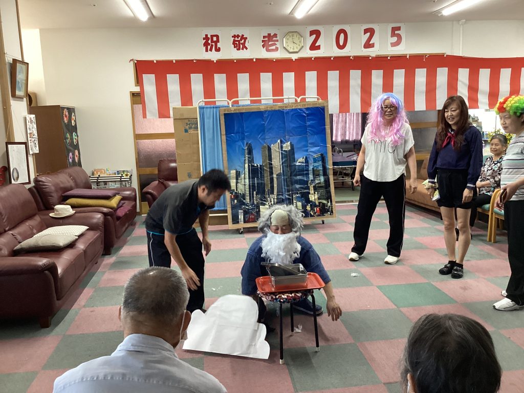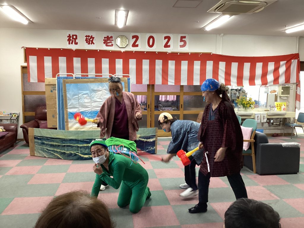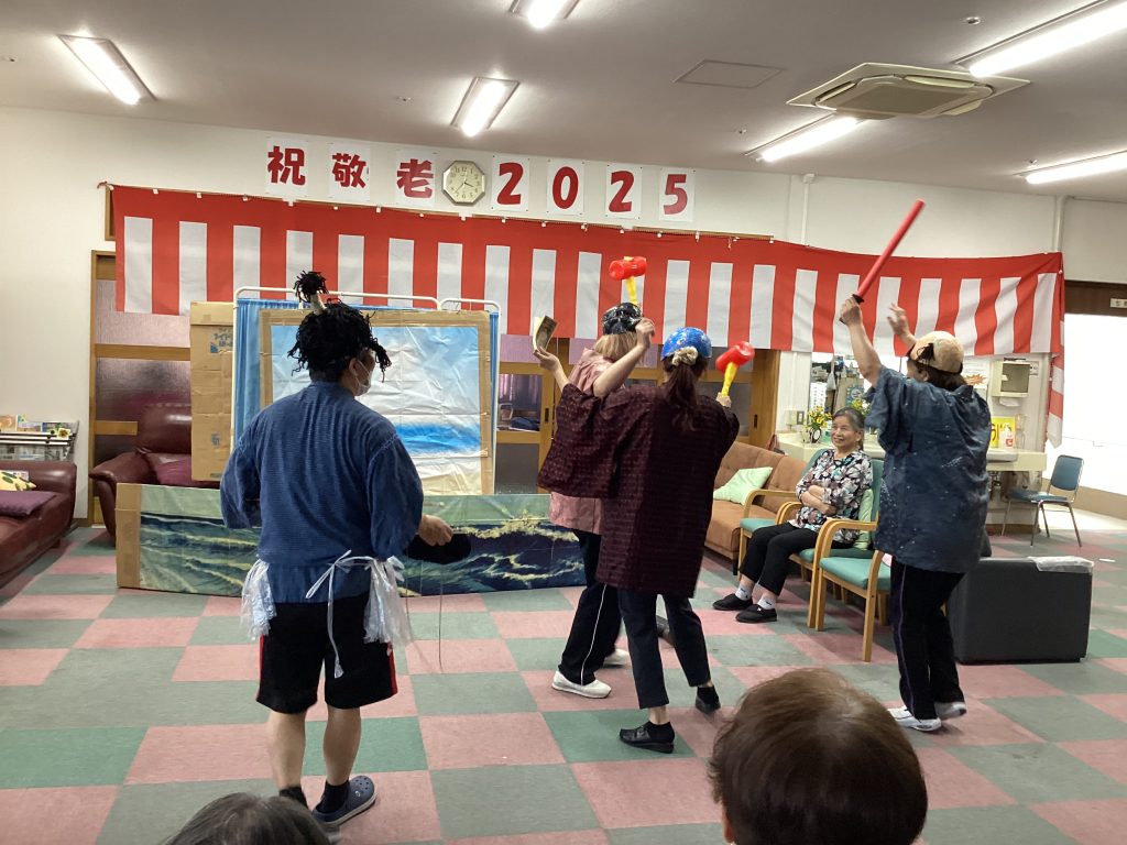皆さんに喜んでいただけるよう寸劇を行いました。